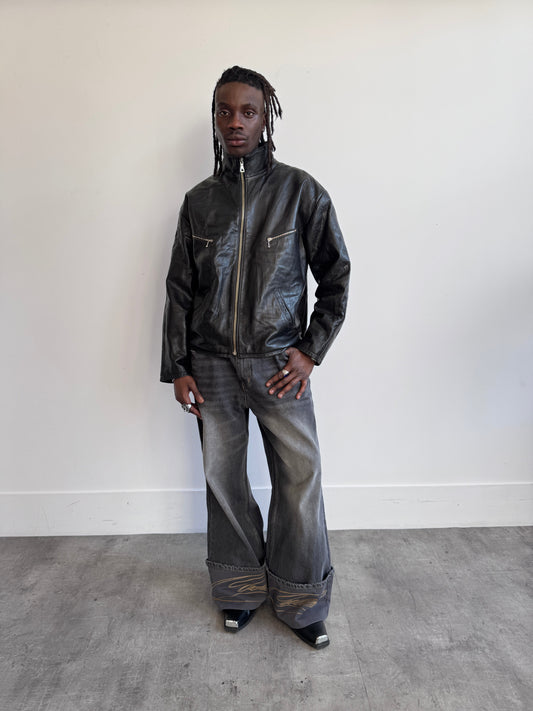 Enjoy Sportwear 1980's Black Draft Leather Bomber (SOLD AS SEEN)