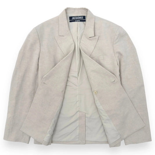 JACQUEMUS LE RAPHIA DOUBLE BREASTED LINEN BLEND JACKET GREY 54 / XXL