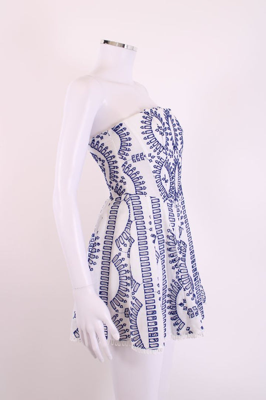 Charo Ruiz Strapless Broderie Anglaise Dress White/ Blue S