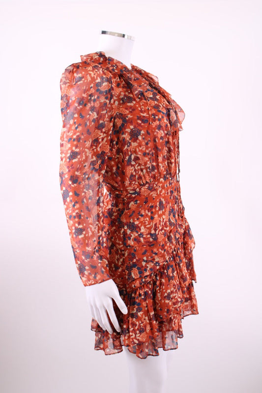 Ulla Johnson L/S Floral Shimmer Dress Rust/ Navy 8