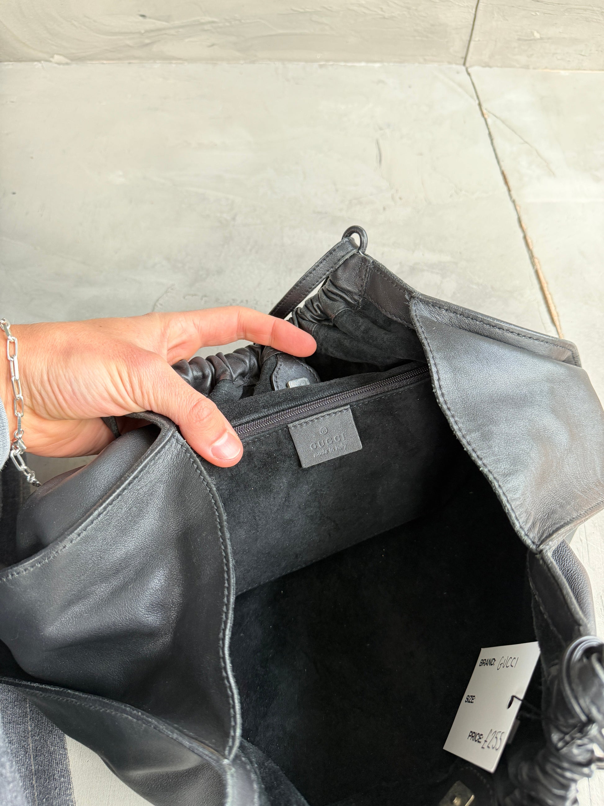 Black leather ruched shoulder bag from Gucci by Tom Ford. Comes with original dust bag.