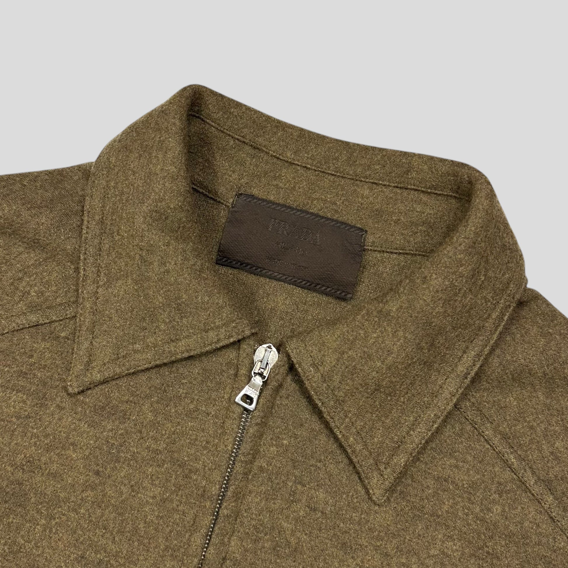 Prada Milano FW98 Heather Green Wool Zip-up Work Jacket - M