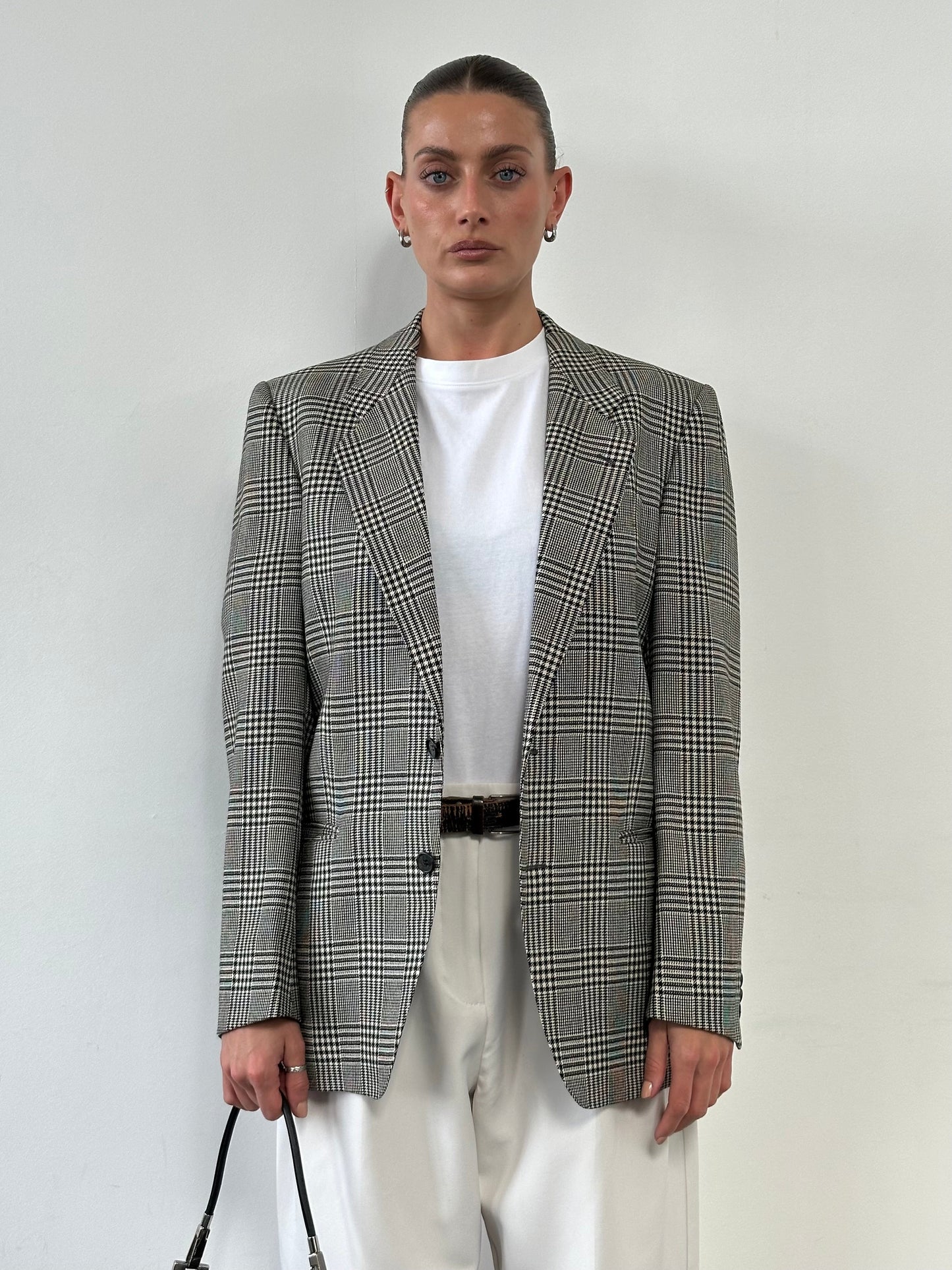Yves Saint Laurent Pour Homme 1980s Check Wool Single Breasted Blazer - M